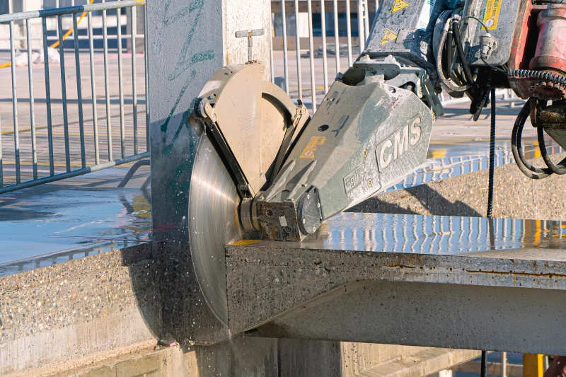 Die CMS Baggersäge ist das perfekte Werkzeug zum bündigen Schneiden von Decken, Böden und Wänden. Sie hat einen Überlastungsschutz für das Sägeblatt durch Federung und Schnittdruckreduzierung. Das Steuergerät der Säge zeigt u.a. Schnitt- und Neigungswinkel an und regelt die Drehzahl automatisch.