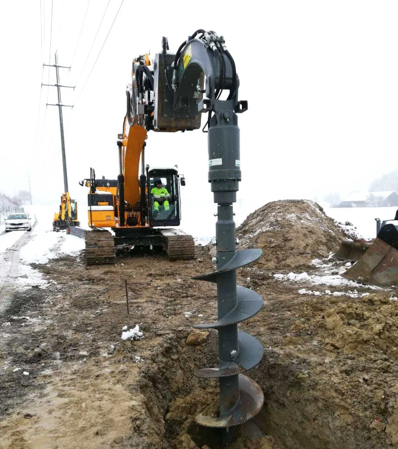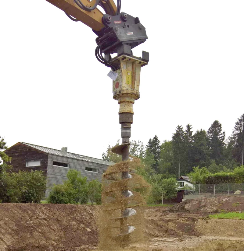 Mit einem Bohrantrieb hast du viele Möglichkeiten – Löcher bohren für Zaunpfosten, Wurzelballen, Baustellenabschrankungen, Schächte, Brunnen, Punktfundamente, Sickerschächte, Erdwärmekörbe und vieles mehr.