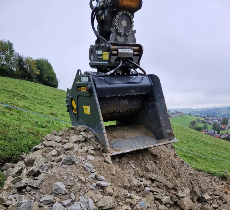 Der Brecherlöffel ermöglicht das effiziente Brechen von Beton, Asphalt, Stein und Bauschutt direkt im Einsatzgebiet. Er reduziert Transportwege, steigert die Produktivität auf der Baustelle und eignet sich für verschiedenste Baggergrössen.