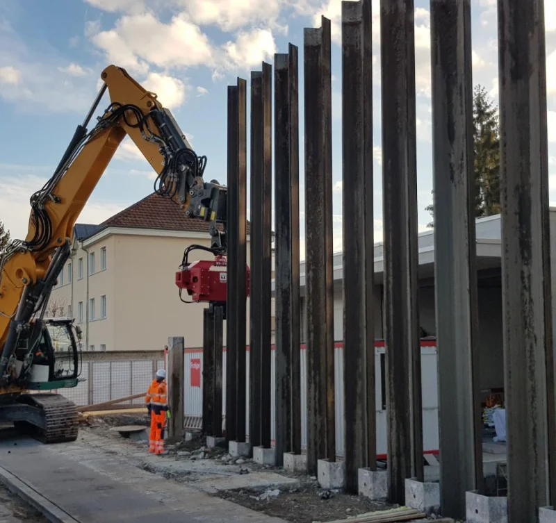 Die kompakten und leichtgewichtigen Vibrorammen können an alle gebräuchlichen Bagger angebaut werden. Die Energieversorgung erfolgt über die Baggerhydraulik und die Ansteuerung über die Bedienhebel des Baggers.