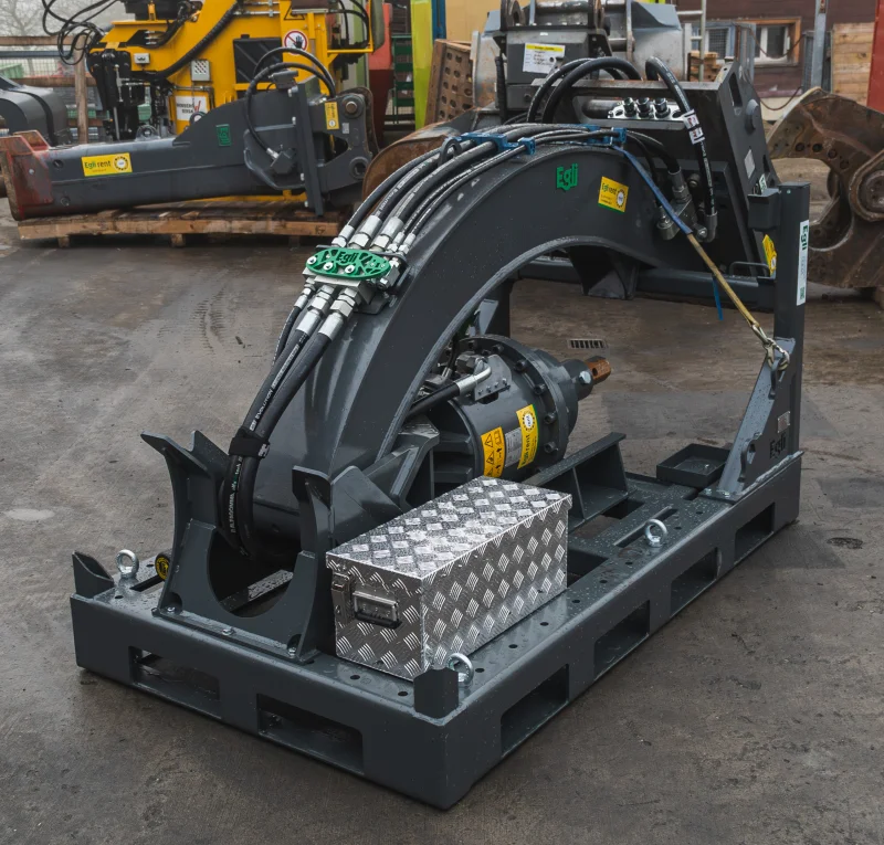 Der Egli Rammengalgen wird mit einem Lochbild gefertigt, das den Aufbau einer Vielzahl verschiedener Schnellwechsleraufnahmen ermöglicht. Er dient als Verlängerung des Baggerstiels und erweitert so den Einsatzbereich von Pendelgreifern, Vibrorammen und Bohrantrieben.