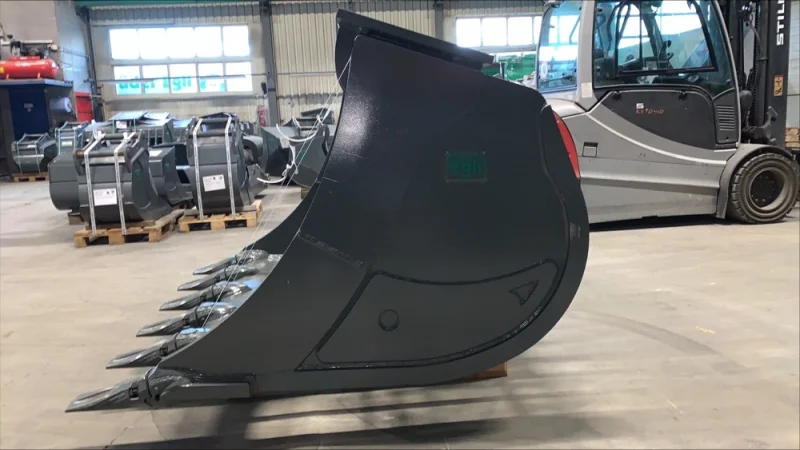 Der Sieblöffel hat anstelle eines gebogenen Bodenblechs, längs angeordnete Rechteckstege mit einem wählbaren Abstand zur Bestimmung der gewünschten Korngrösse. Durch diese spezielle Bauform ist der Löffel ein super Werkzeug zum Sortieren von Grob- und Feinmaterial, wahlweise mit Zähnen oder Messer erhältlich.