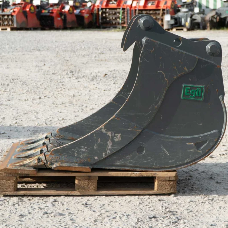 Der Egli Tieflöffel hält problemlos den härtesten Einsätzen mit hohen Ausbrechkräften stand. Die robuste Schweisskonstruktion des Löffelkörpers und die ausgeklügelte Geometrie ermöglichen ein müheloses Eindringen ins Material sowie eine optimale Löffel-Füllung und -Entleerung.