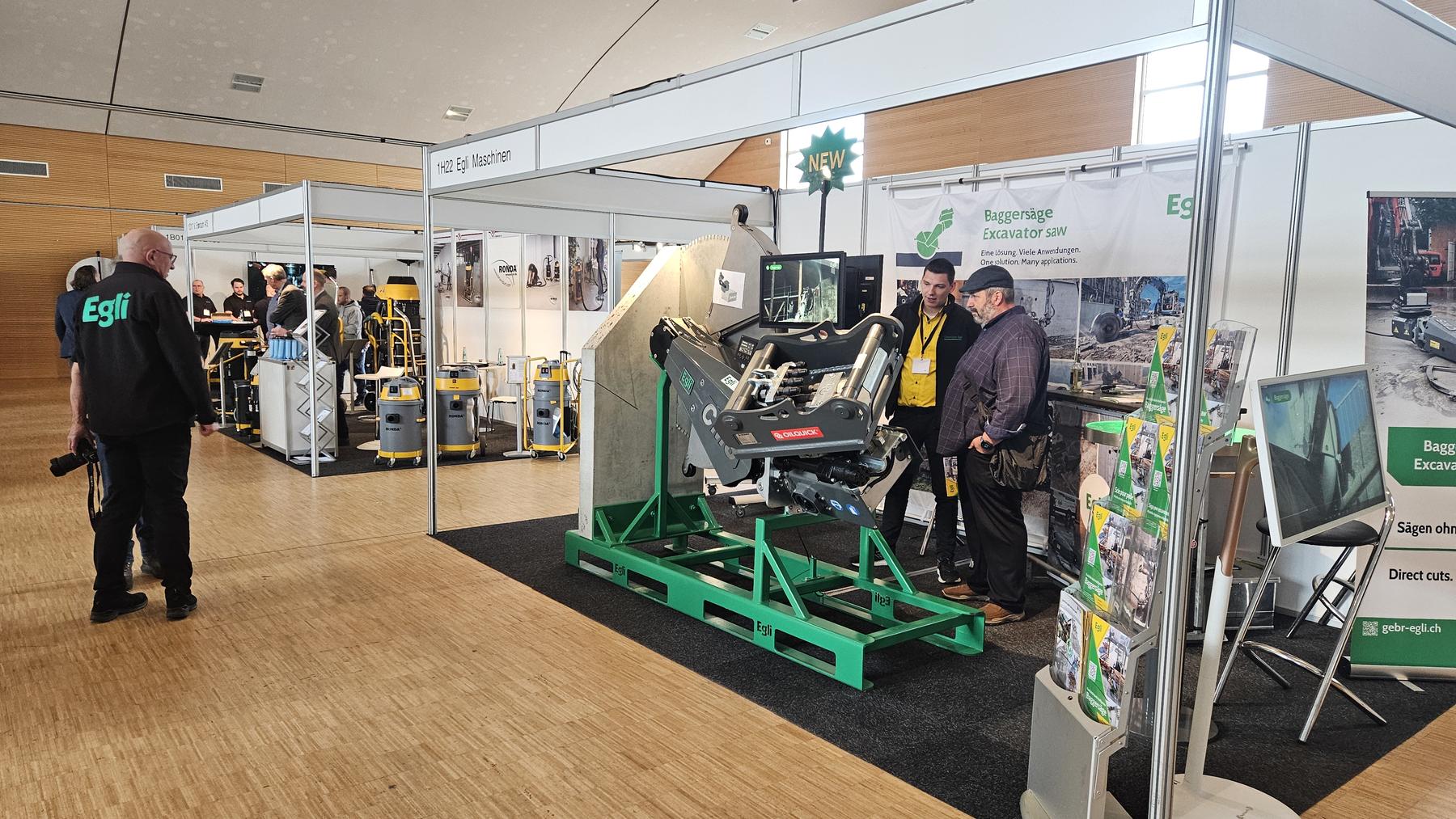 In einer grossen Messehalle, die vor allem von handgeführten Werkzeugen geprägt war, stachen wir mit unserer Baggersäge definitiv hervor. Entsprechend war auch das Interesse gross: Besucher:innen aus mehr als 8 Ländern liessen sich diese Technologie erklären und diskutierten mit uns über neue Einsatzmöglichkeiten auf der Baustelle.