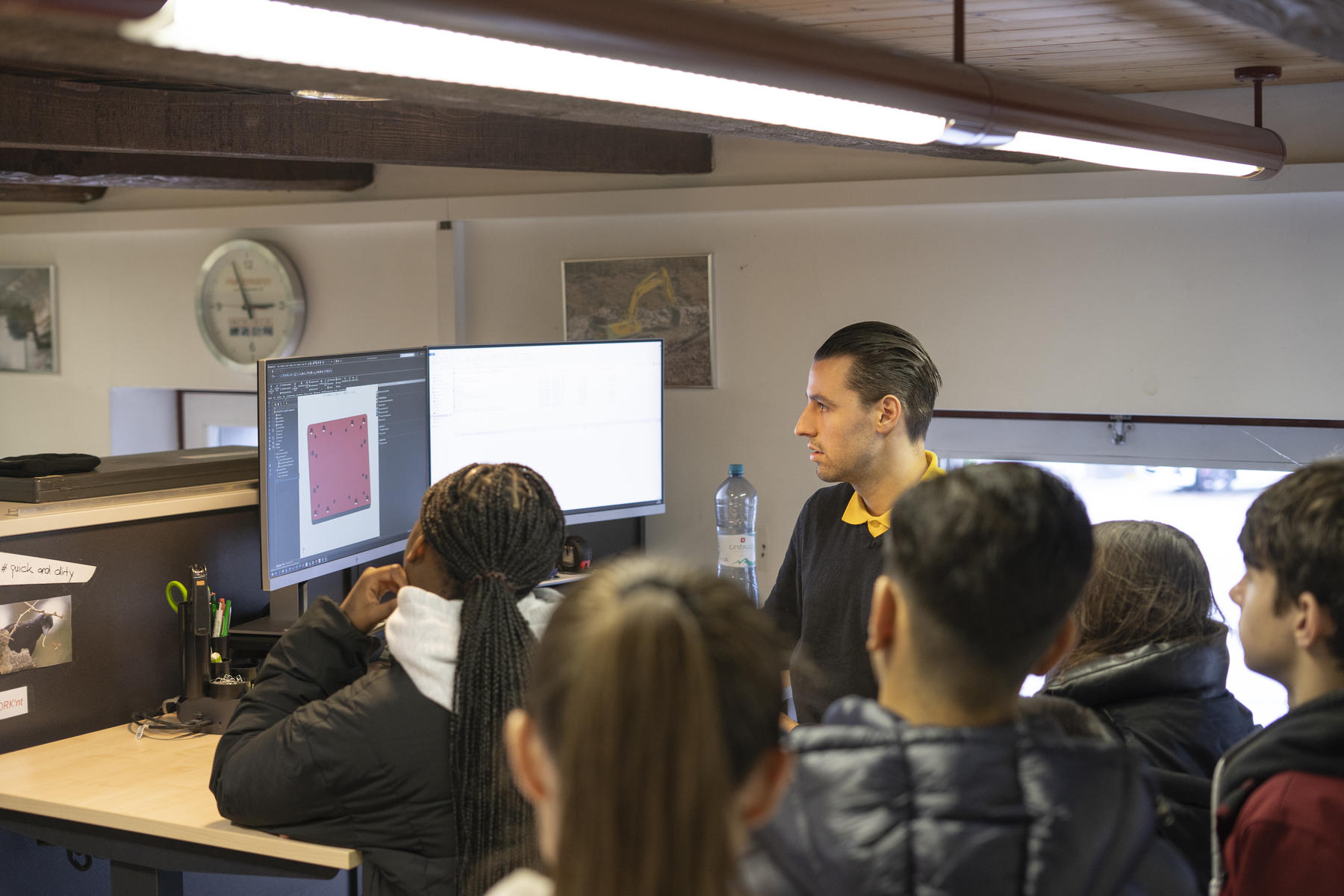 Anfangs Oktober durften wir die Oberstufe Lindenhof, Wil mit einer Lehrperson und circa 15 interessierten Schüler:innen bei uns begrüssen. Nach einer kurzen Vorstellung der Berufe durch unsere Lernenden sowie allgemeinen Infos zum Bewerbungsprozess für eine Berufserkundung, eine Schnupperlehre bis zur Bewerbung für die Lehrstelle durften sie einen interessanten Rundgang durch den Betrieb machen. Unser Geschäftsleitungsmitglied und Leiter Verkauf und Marketing, Herr Ertan Keskin, konnte den Schüler:innen und der Lehrperson unsere Tätigkeiten vorstellen und viele interessante Fragen beantworten.