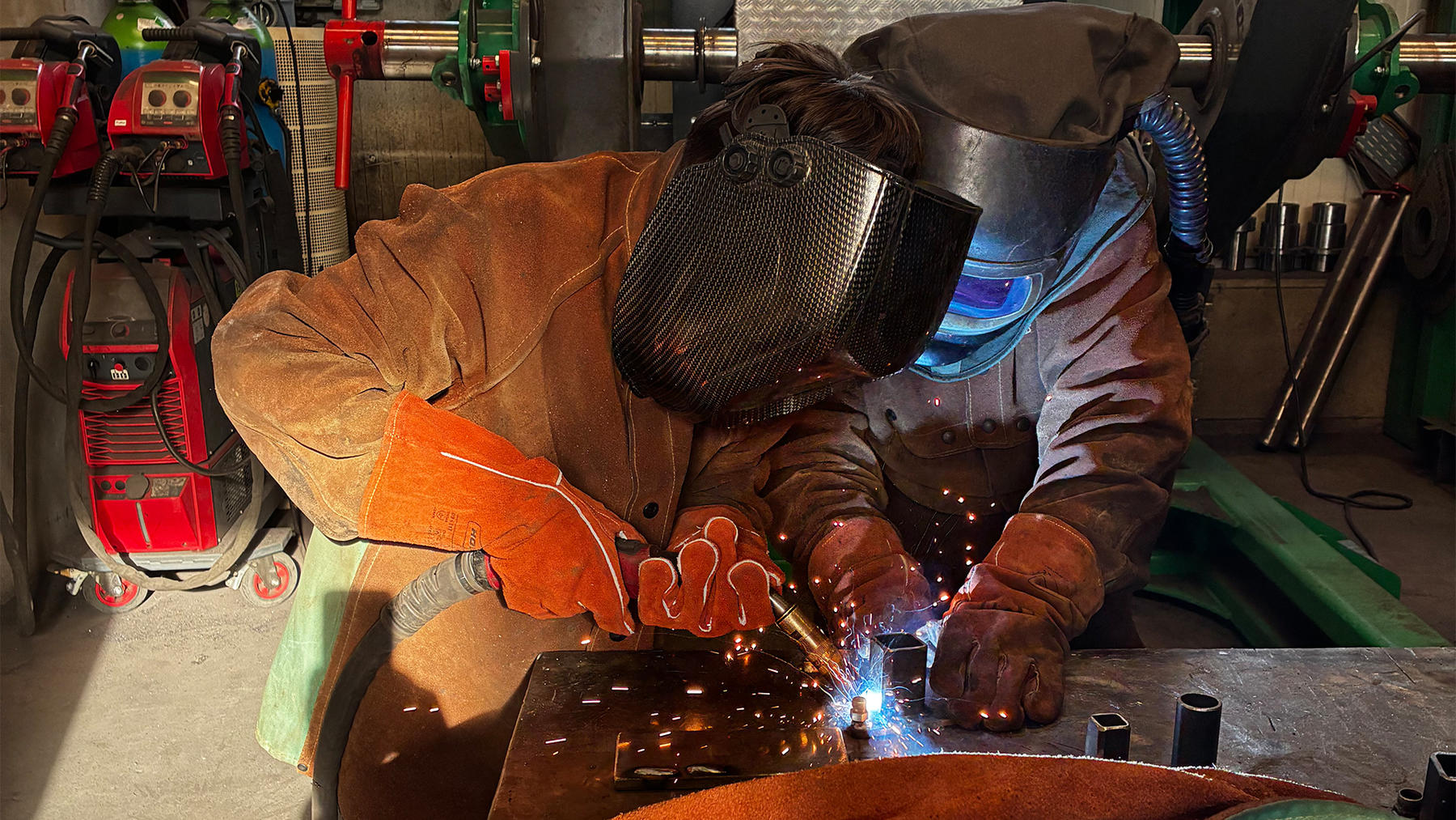 - Schweissen in der Schlosserei, wobei alle mit Schutzkleidung ausgerüstet wurden