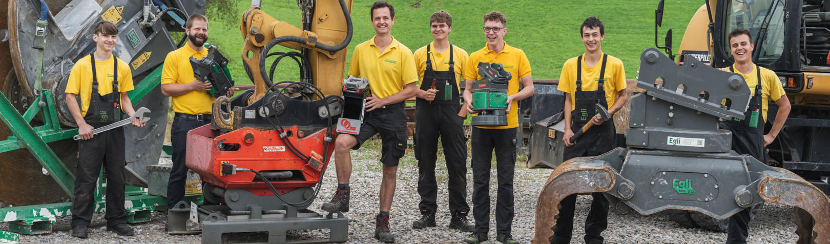 Im Bereich Baumaschinen verfügen wir über die grösste Anzahl sowie die innovativsten und neuartigsten Anbaugeräte am Markt und zeichnen uns durch Qualitätsbewusstsein auch im Bereich Service und Reparaturen aus. Durch eine kompetente Schlosserei, Produktion sowie die Entwicklung (Konstruktion) von Eigenprodukten und unsere grosse Werkstatt sind die Übungsfelder sehr vielfältig.