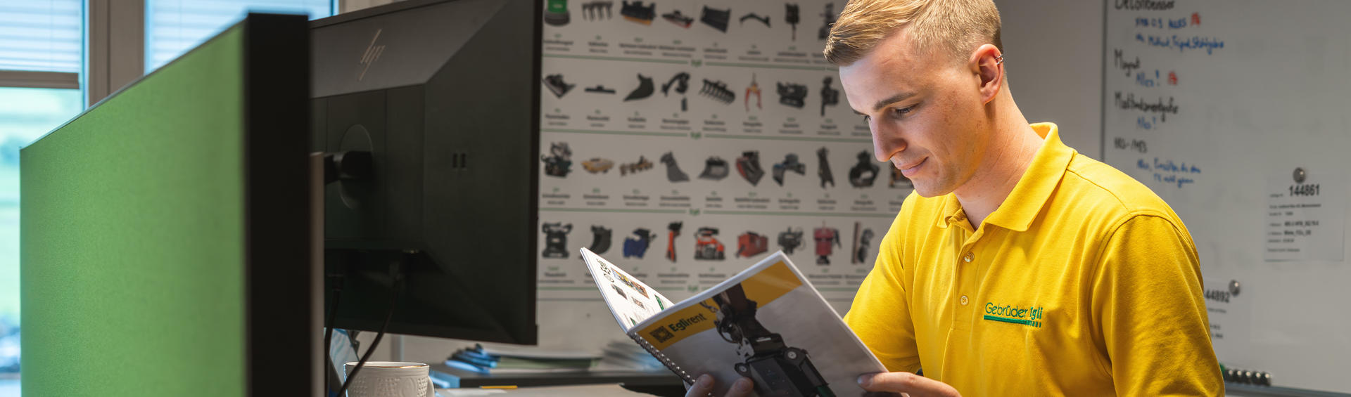 Filip hat 2011 seine Lehre als Baumaschinenmechaniker abgeschlossen und später die Weiterbildung zum technischen Kaufmann absolviert. Heute ist er bei uns im Innendienst für die Vermietung unserer Anbaugeräte verantwortlich. Im Egli Mietpark werden Aufträge für die ganze Schweiz koordiniert, mit höchsten Ansprüchen an Lieferfristen und Passgenauigkeit. Wie Filip verfügen auch viele unserer Innendienstmitarbeitenden über eine technische Grundausbildung, was eine besonders hohe Beratungsqualität gewährleistet.