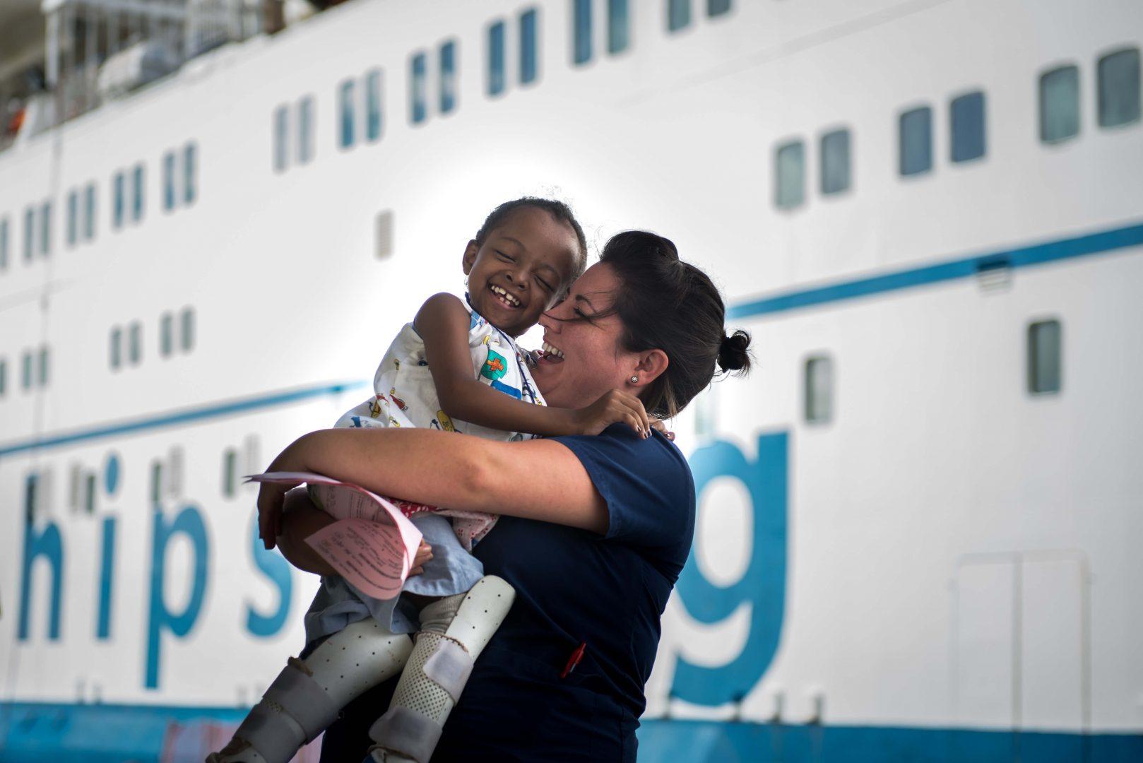 The Ships of Hope are floating hospitals with medical equipment that meets Western standards. This means that the medical staff and doctors can be deployed immediately from anywhere. Mercy Ships was founded in 1978, bought as a former cruise ship and converted into a hospital ship. Today, the Africa Mercy and the Global Mercy, the two largest civilian hospital ships in the world, are also part of the organisation. Two out of three people in the world have no access to surgical care because they live too far away from a hospital or lack the financial means for an operation. Often, the necessary treatment is simply not available in the country. The individual fates of people who, like us, do not have access to medical care concern us and we want to help keep the hospital ships on course. That is why we support the humanitarian adventure of Mercy Ships.