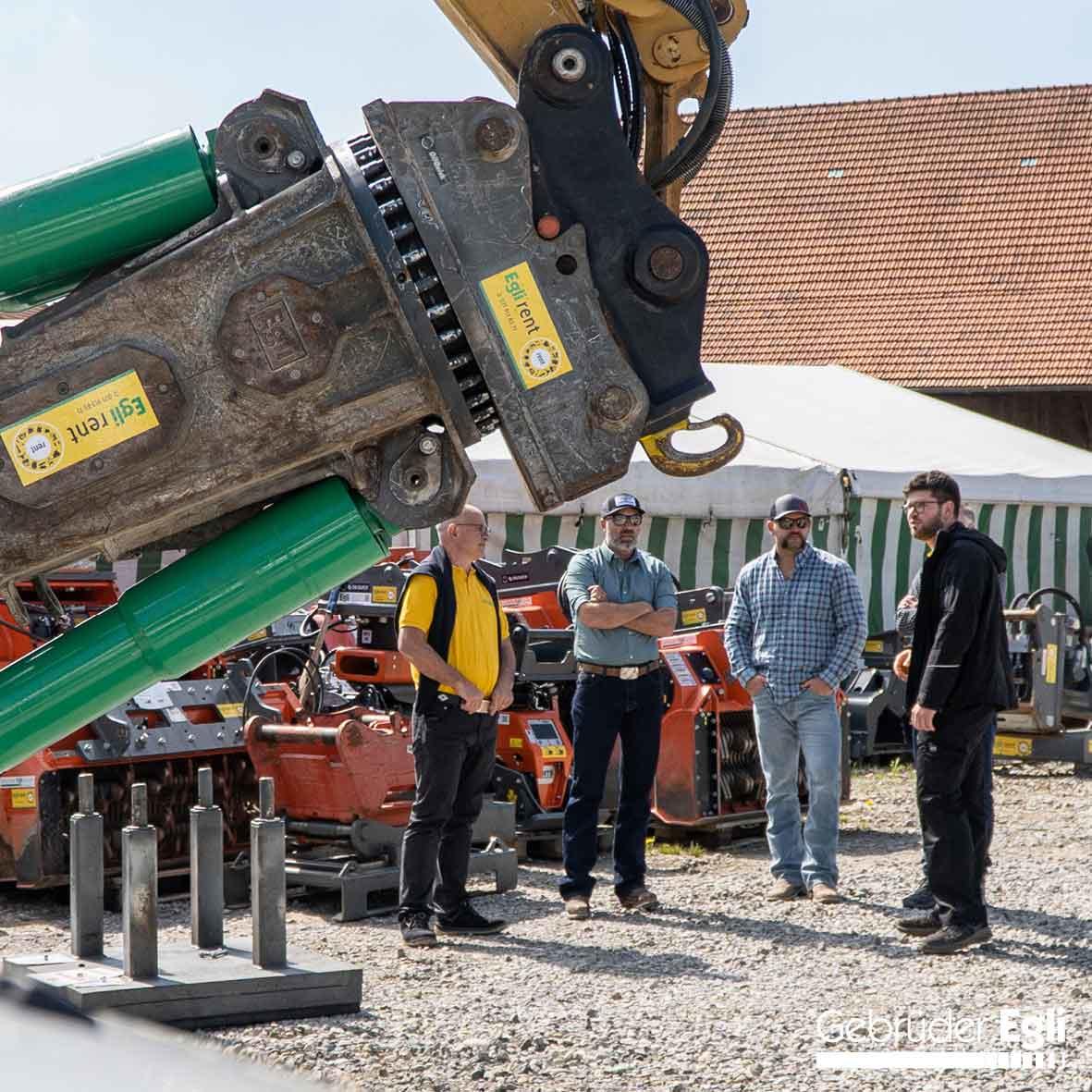 The leadership team from Stutsman Gerbaz, based in the American ski resort of Aspen, recently paid us a visit in Rossrüti. Their from overseas was part of a "Swiss construction machinery tour" with the company Eberhard. It was a day filled with engaging conversations about innovation, a showcase of the diverse range of excavator attachments available in our rental park, and even included a live demonstration of our concrete crusher - truly an exciting opportunity for construction machinery fans to talk shop!