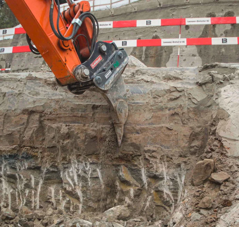 The Egli ripper tooth is particularly suitable for loosening hard or frozen ground, loosening rock as well as for demolition and recycling work. The robust welded construction enables effortless work in all areas where maximum breakout force is required.