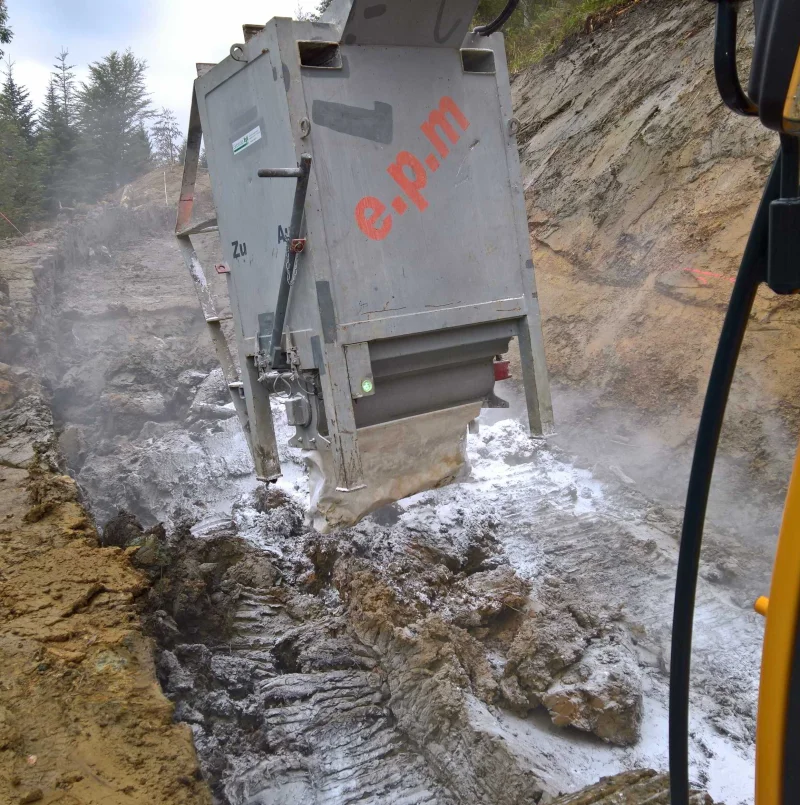 A recognised process with high-performance technology: optimum dosing of the binding agent using the MTS binding agent spreader and very good mixing with the ALLU shovel.