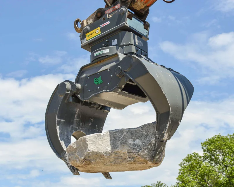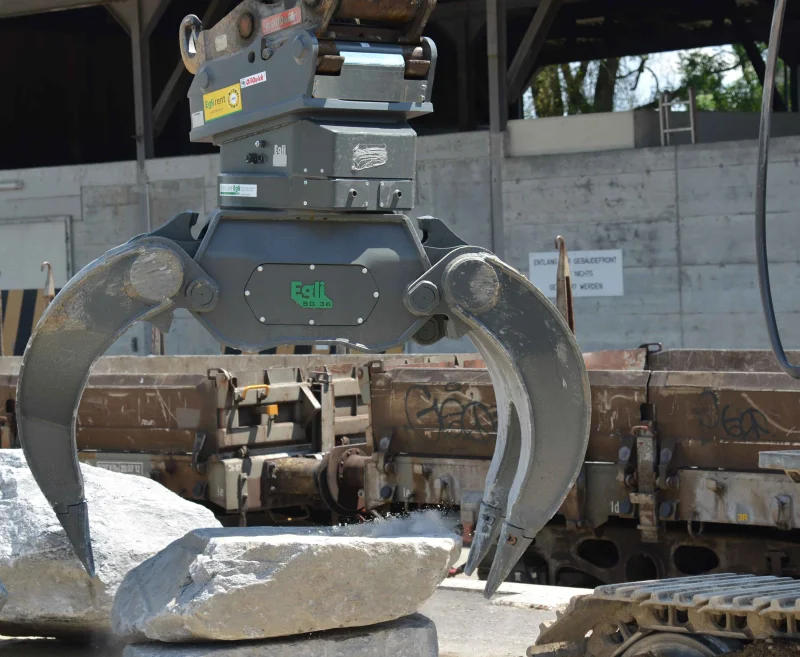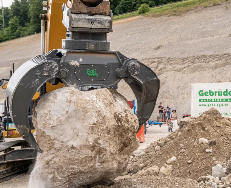 The Egli stone grapple is ideal for moving boulders and exposed stones. It is also often used for the construction of stone walls, river defences or the loading of stones onto commercial vehicles, for example.