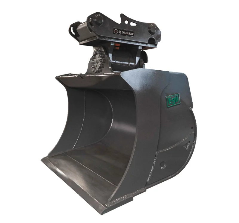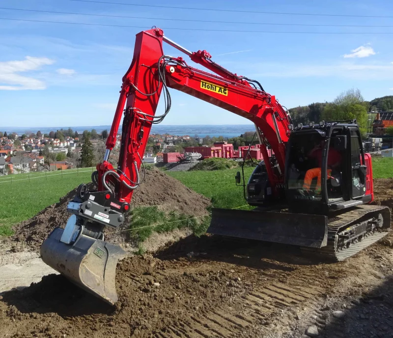 The Egli motor bucket is used for various excavation and loading tasks, such as levelling slopes. It simplifies many tasks with its large swivelling range and unique geometry. The high quality of the steel used also guarantees a long service life.