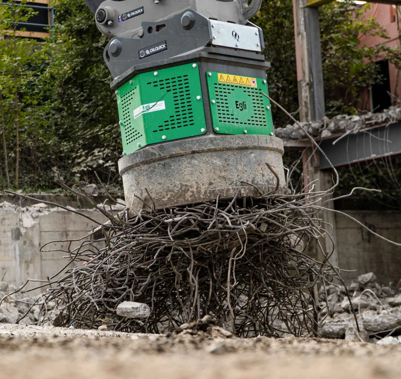 With the Egli hydraulic magnet, you can significantly reduce the amount of steel in construction waste and thus prevent damage to construction machinery. It also effortlessly ensures tidy and easily manoeuvrable construction sites.