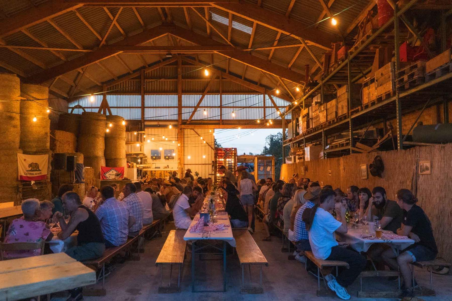 Après ces exploits sportifs et ces jeux d'adresse, l'équipe Egli a pu se rendre dans la grange pour profiter de la partie conviviale de la soirée. Un délicieux buffet corresondant au thème était prêt pour tous, avec de délicieuses grillades variées préparées par le Toggenburgerhof.