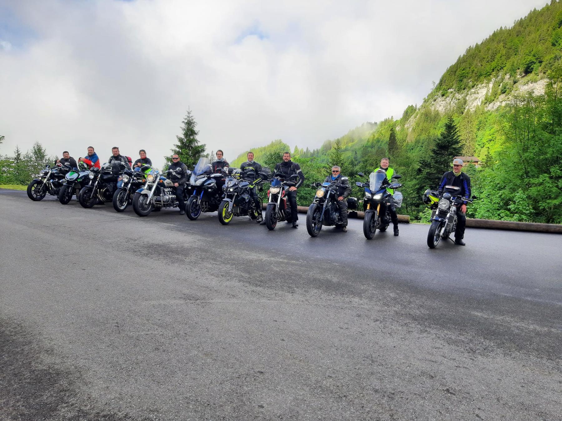 Le week-end dernier, le coup d'envoi du tour à moto Egli a été donné à 10h30 au siège de l'entreprise Gebrüder Egli. Après une brève redistribution des bagages et avec réservoirs bien remplis, le départ a été donné. Le premier arrêt a eu lieu au Ricken, où deux autres motard se sont joints à notre groupe. En cours de route, un autre ancien collaborateur nous a rejoints, portant notre groupe à dix personnes.