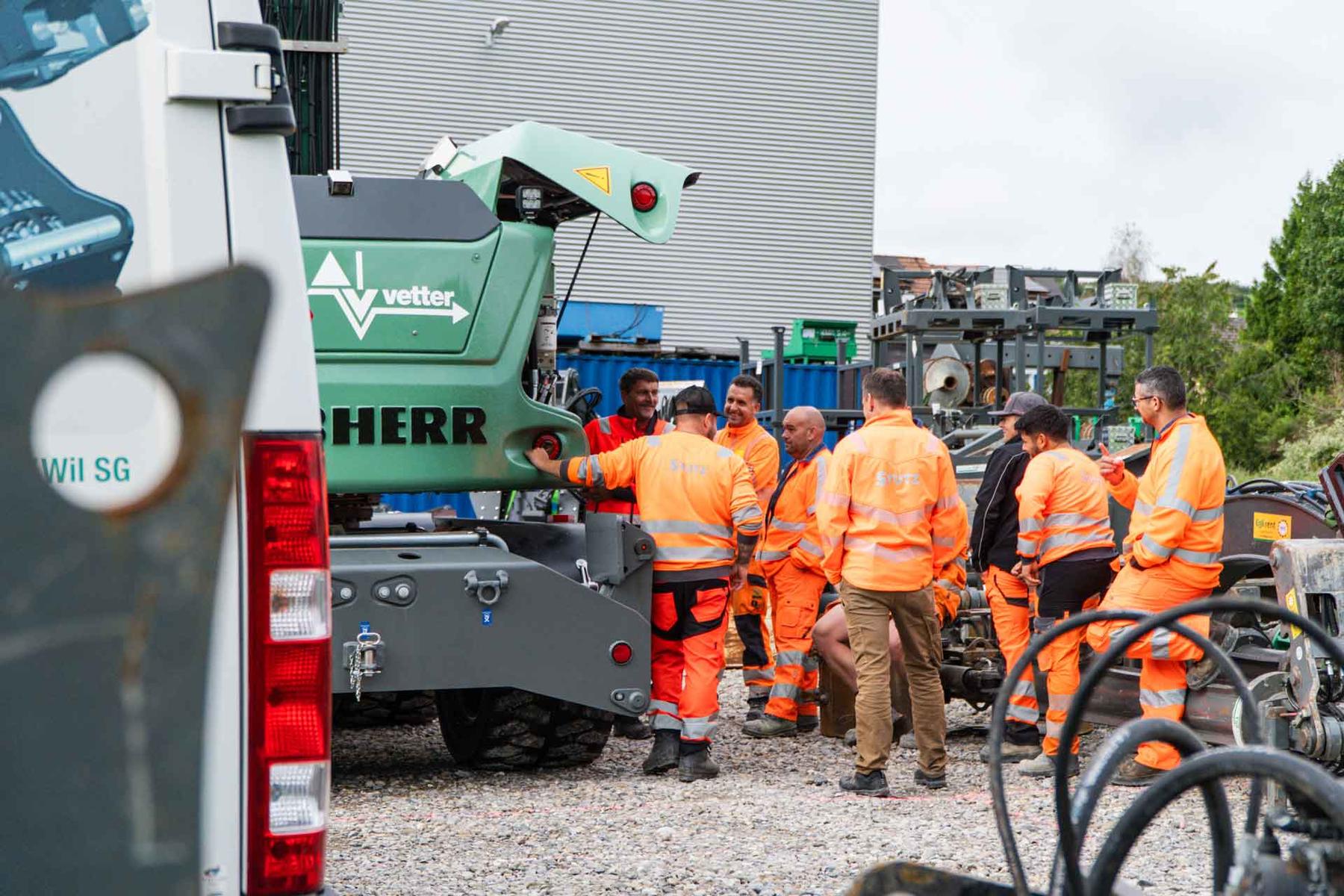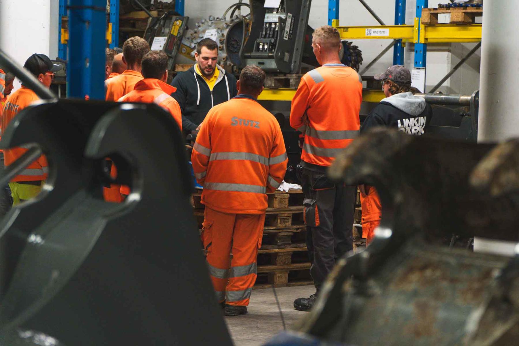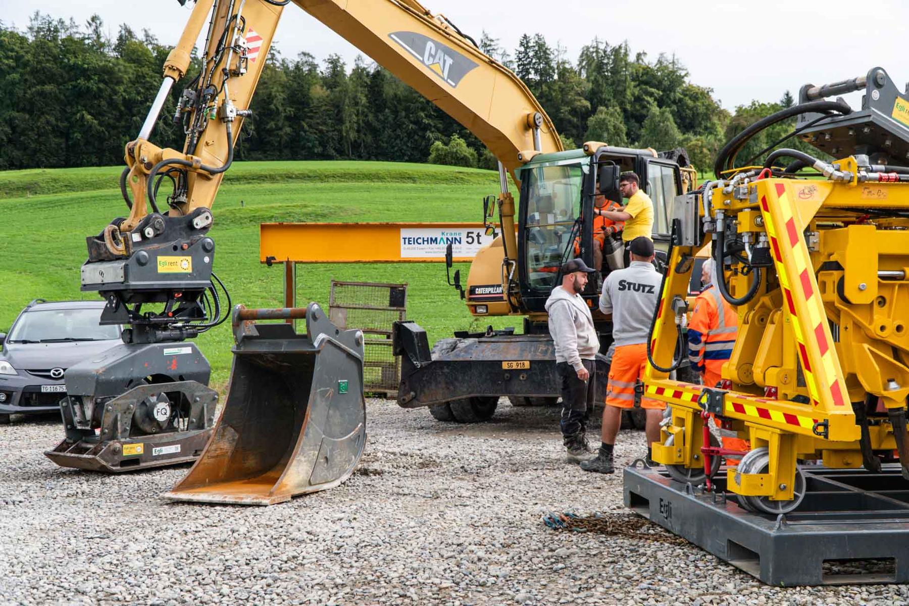 Le 22 septembre 2023, plus de 30 collaborateurs•trices de Stutz AG ont visité notre entreprise dans le but de renforcer leurs connaissances et d'acquérir de l'assurance dans l'utilisation des engins lourds. Au cours de cette visite, divers équipements pour pelle tels que la pince de démolition Egli, le marteau hydraulique, le grappin, le vibrofonceur et l'attache rapide OilQuick ont été examinés en détail.