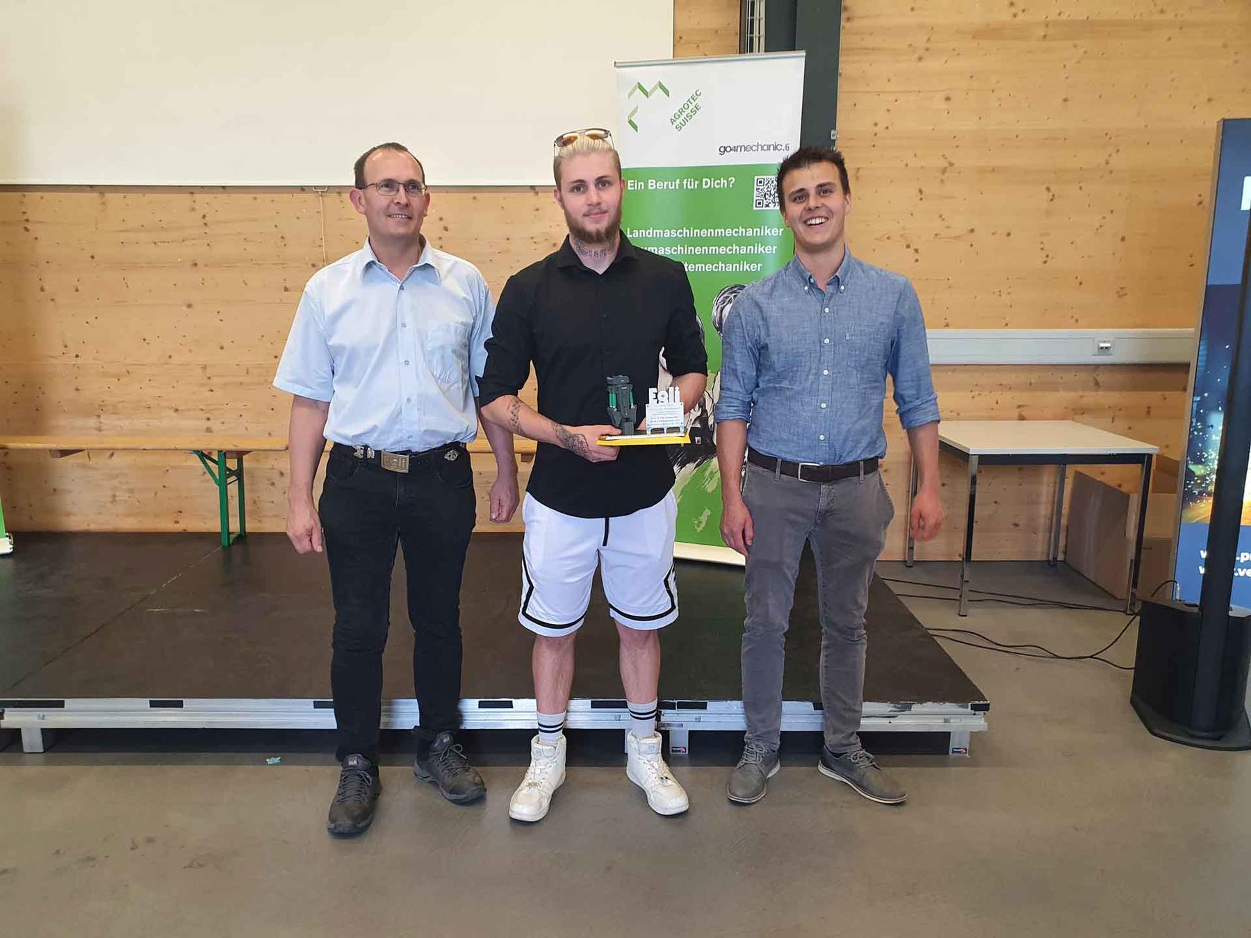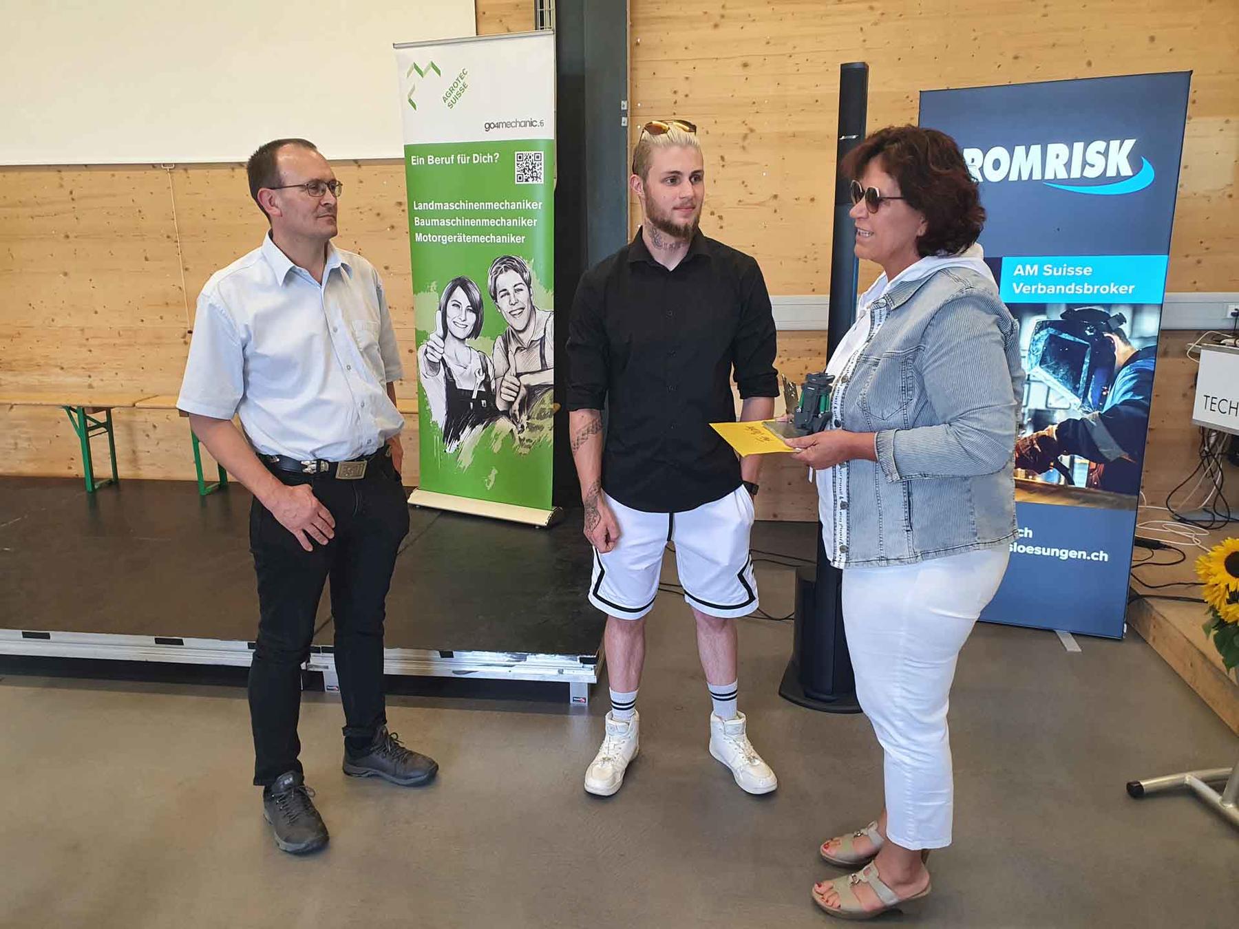 Nous avons le plaisir de féliciter chaleureusement trois jeunes hommes pour leur réussite d'apprentissage! Notre apprenti mécanicien en machines de chantier, Jerôme, a terminé sa formation avec succès et obtenu son CFC en même temps que les deux fils Egli, Aaron, ayant également réussi son CFC de mécanicien en machines de chantier, et Remo a obtenu son CFC de mécanicien en machines agricoles. Tous trois ont passé les quatre dernières années ensemble à l'école professionnelle, étant donné que les filières de mécaniciens•ciennes en machines de chantier et de mécaniciens•ciennes en machines agricoles sont dans une même classe.