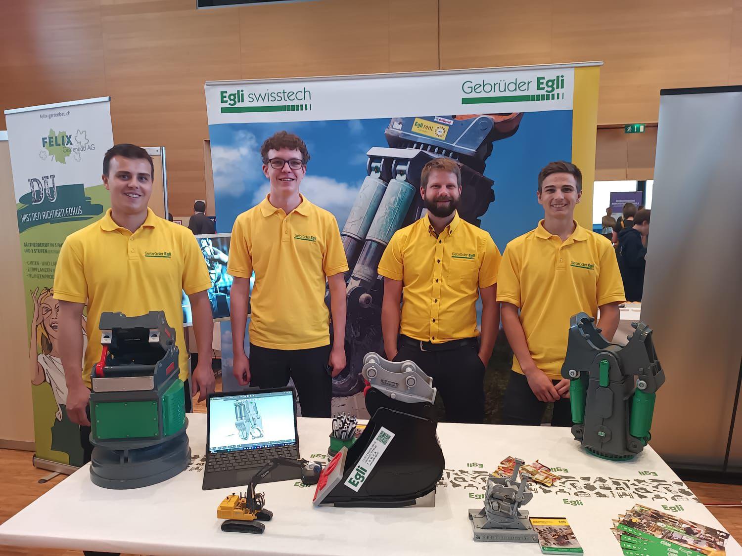 L'équipe Egli était représentée par quatre collaborateurs motifés qui ont pu donner aux visiteurs du forum un aperçu de nos places d'apprentissage vacances de mécanicien:ne en machine de chantier, de mécanicien:ne de production et de dessinateur:trice industriel.