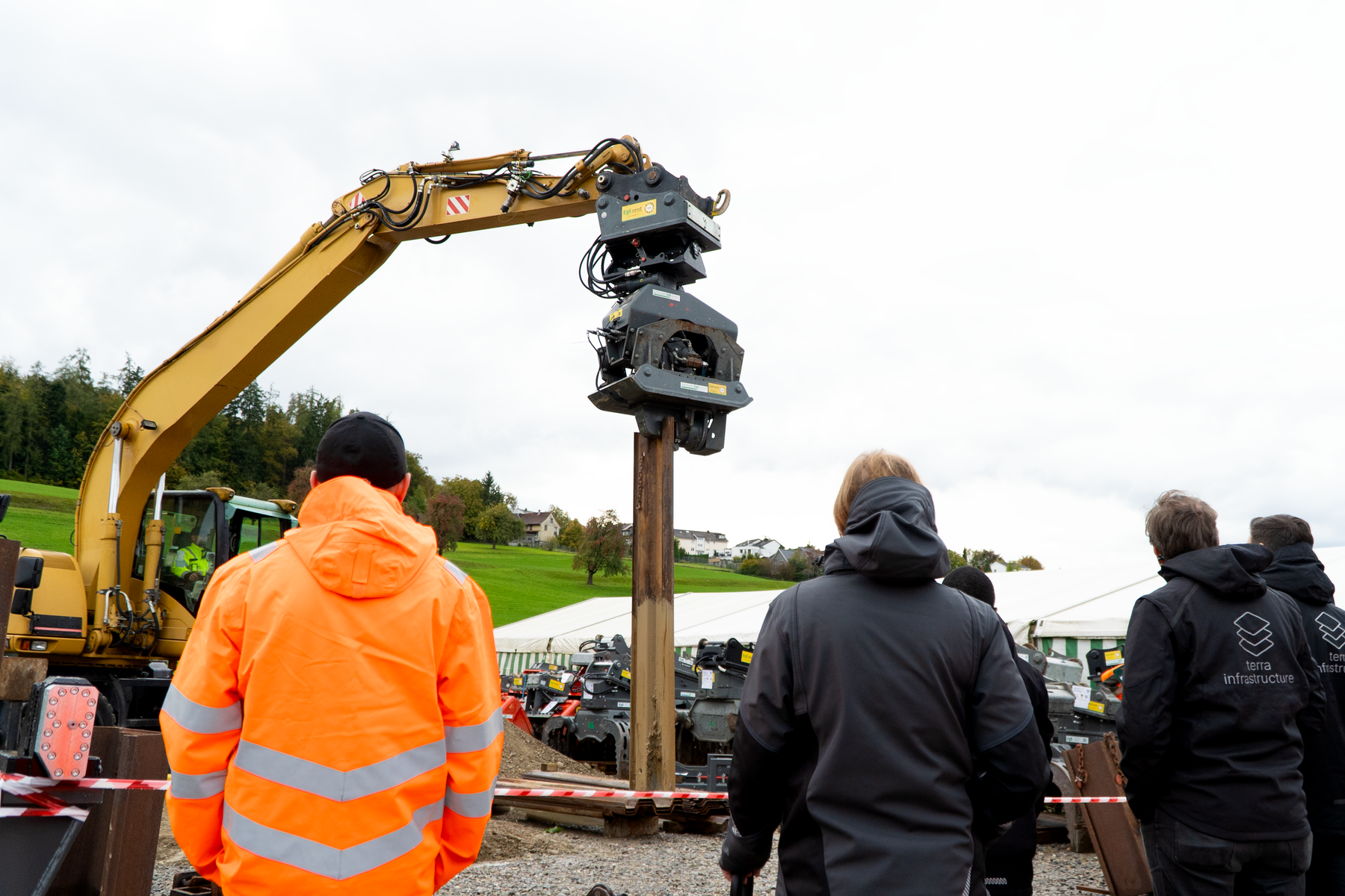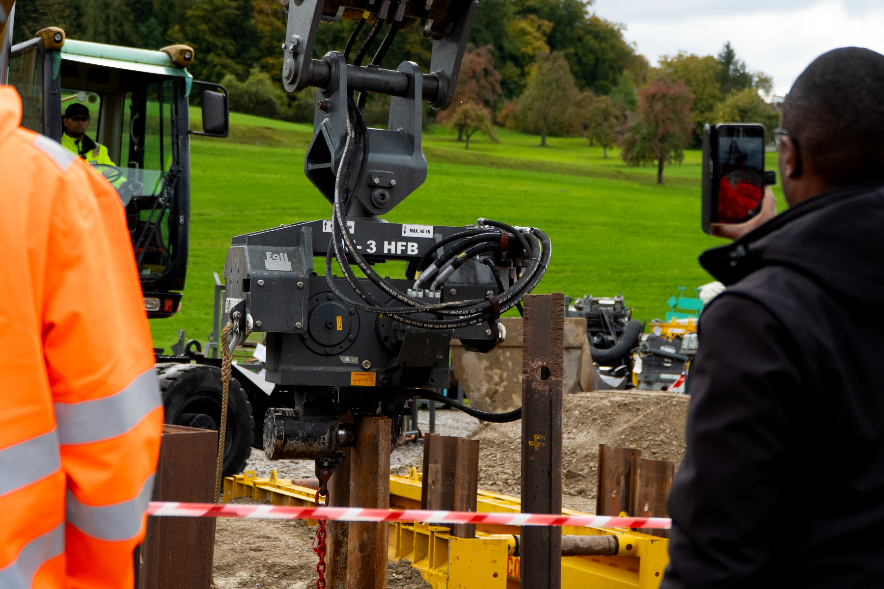 Parmi les sujets abordés figuraient notamment la distinction entre les palplanches, l'utilisation de vibrofonceurs pour pelle à couple fixe et variable et les obligations des conducteurs•trices d'engins lors du vibrofonçage. En outre, les principales dispositions de sécurité et leur applicaiton pratique dans le domaine du vibrofonçage ont été présentées en détail.