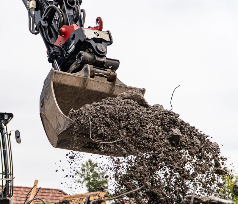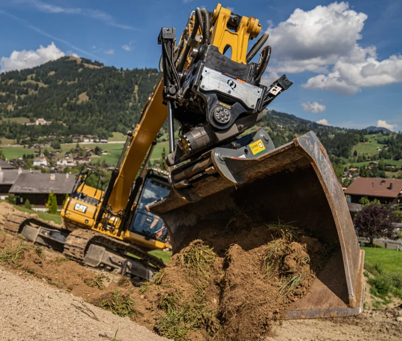 Le godet niveleur Egli a été conçu pour être utilisé sur un tiltrotateur. Le solide chanfrein latéral empêche toute collision lors de la rotation du godet et sa faible hauteur permet de disposer de la plus grande force d'arrachement possible.