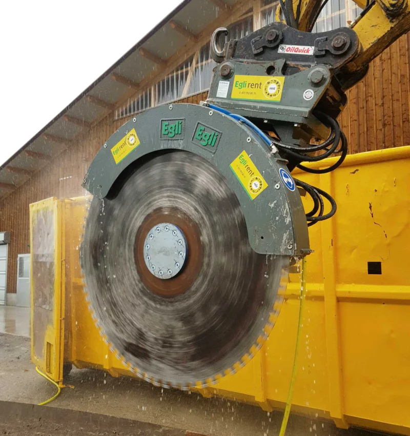 Les scies à disque pour pelle de la gamme KDS ont été conçues pour la découpe du béton, de l'acier, du béton armé, de la pierre et des matières plastiques renforcées de fibres de verre comme les pales d'éolienne. Les vitesses de rotation élevées permettent une utilisation très diversifiée et une grande efficacité.