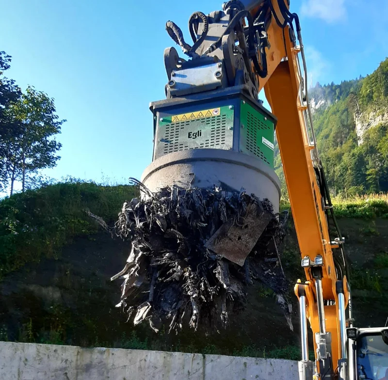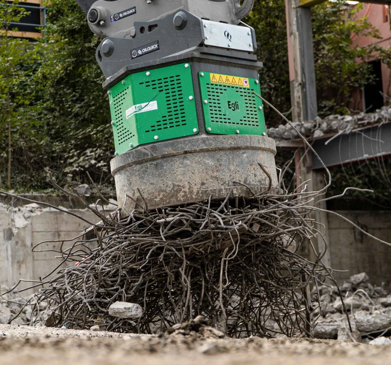 Effectuez sans effort les travaux de nettoyage, de tri et de chargement avec l'aimant hydraulique Egli. Les travaux de tri et de déconstruction automatisés permettent de gagner du temps et garantissent une qualité irréprochable des matériaux recyclés ainsi que leur traitement ultérieur sans problème.