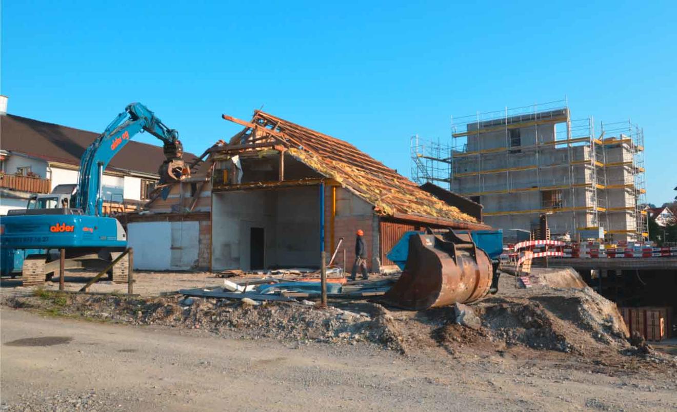 Demolizione del vecchio fienile dei maiali e inizio dei lavori di costruzione della nuova sede principale.