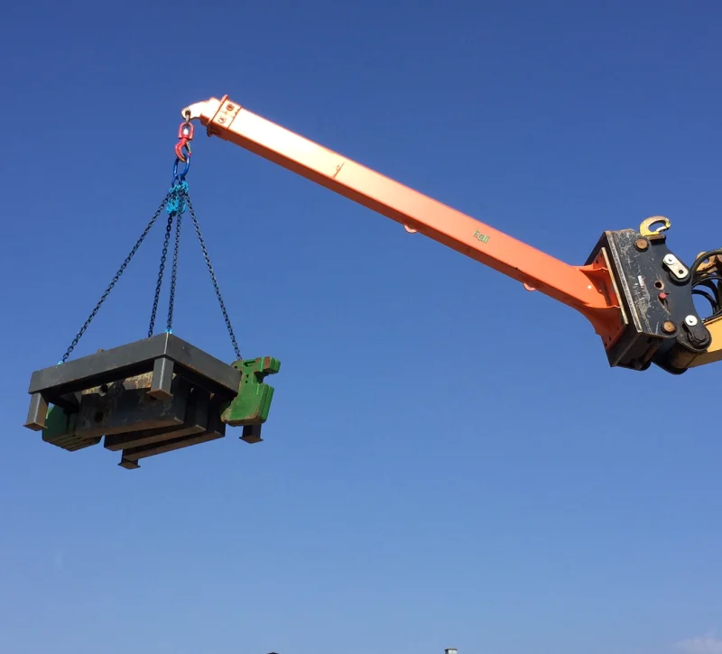 Il braccio telescopico è un attrezzo di sollevamento che serve per estendere il braccio dell'escavatore, consentendo una maggiore portata. Può essere regolato in lunghezza grazie a un cilindro idraulico integrato.