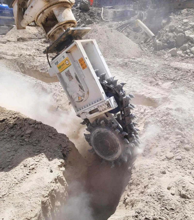 Le frese a catena della serie EK vengono utilizzate su rocce con una resistenza a compressione uniaxiale fino a 140 MPa. Possono fresare in modo efficiente, a bassa vibrazione e con precisione, trincee strette e profonde con una larghezza a partire da 370 millimetri.