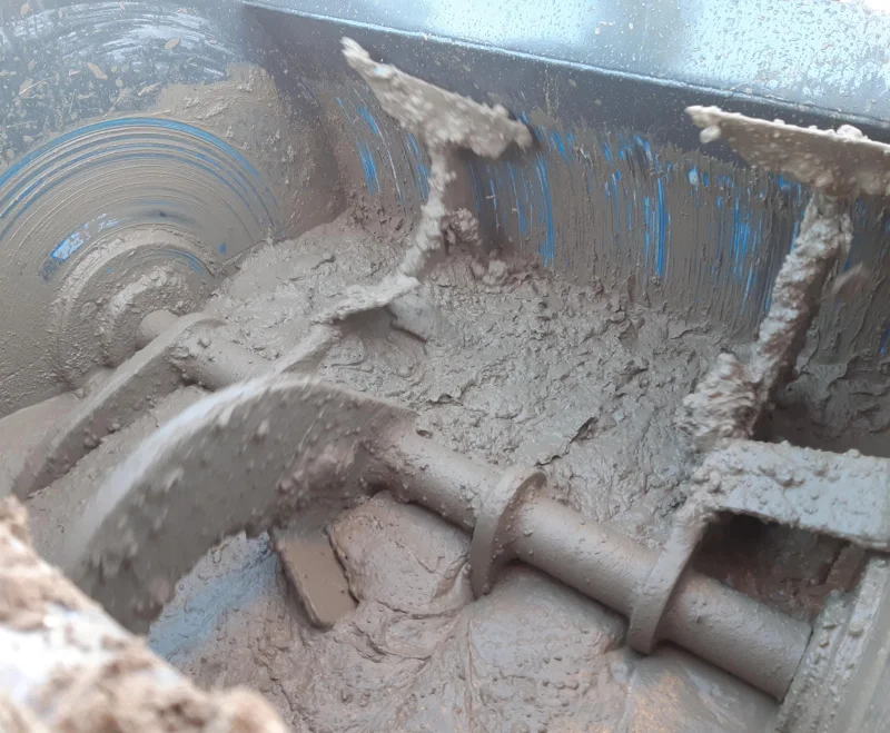 L'impianto mobile per terra fluida trasforma il terreno scavato in terra fluida in soli 5 minuti, aggiungendo compound e una determinata quantità d'acqua in modo ecologico.